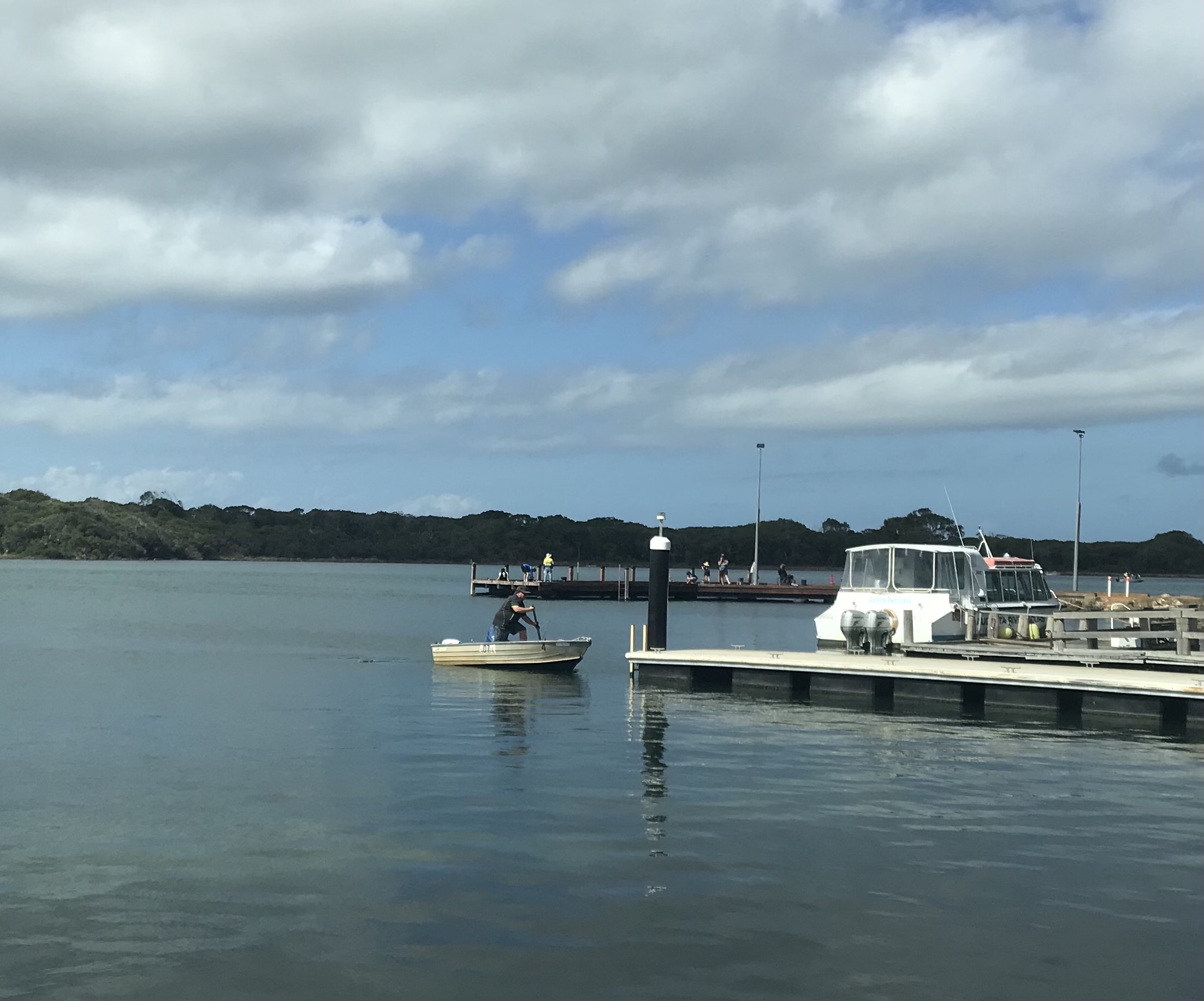 After the excitement and deciding against our swim, we headed for another walk and then to the Augusta Bakery for our last pie before heading home. We parked up at the boat ramp to eat, knowing there is always something to watch when there are boats. Sure enough within a few minutes we spotted some entertainment. I feel awful calling it that because in reality it didn’t look much fun for the two poor men involved. Out in the middle of the river was a stranded tinny with two men attempting to row it in. One with an oar and the other with what looked like the paddle part of an oar, minus the stick.