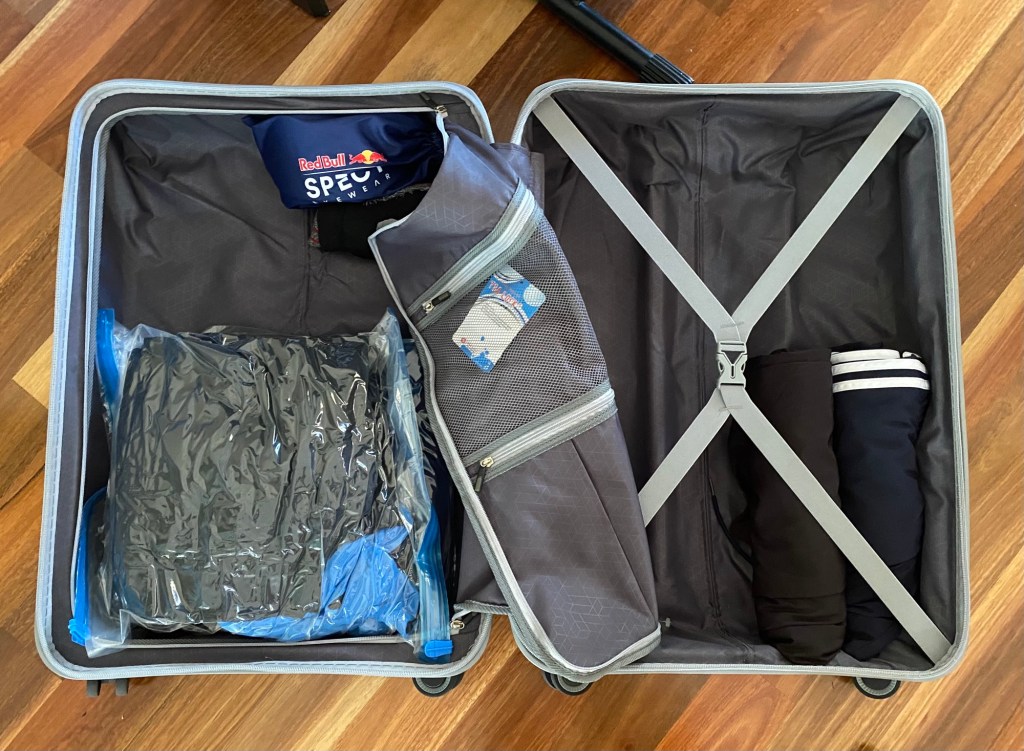 These are a god send, particularly for winter holidays. With the Travel Bee’s departing for Japan in seven days, the bags are out and the ski gear looks huge. But, with the help of these nifty little bags it now only takes up one quarter of a 66cm case (per person). That’s pretty good.