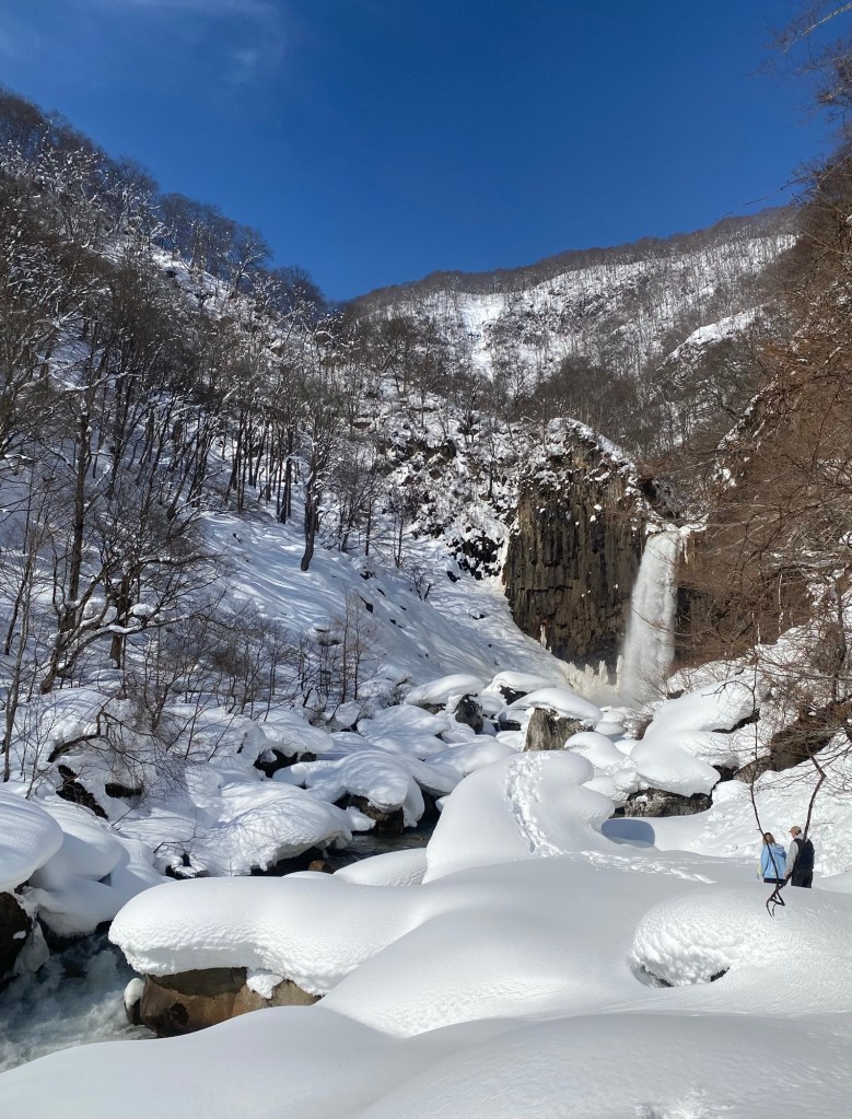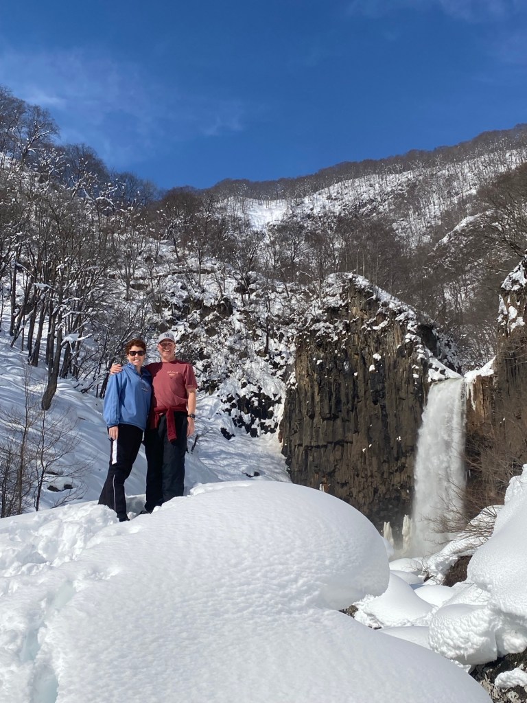 After hanging up my skis, and on a bright ‘bluebird’ day, Mr Travel Bee and I decided to join Myoko Ski Lodge’s waterfall hike.