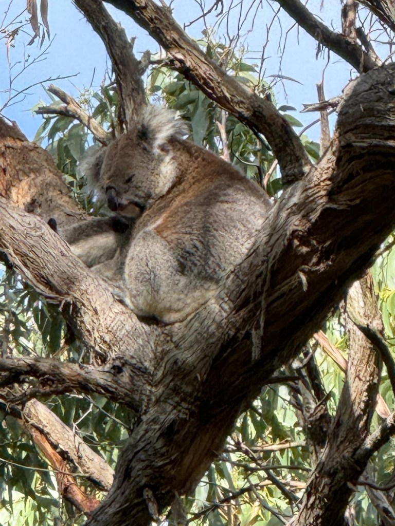 After hiking the forest, we dropped down into Blanket Bay for a picturesque lunch and toilet break. Then back up into the trees for more koala action. It was a privilege to watch these beautiful animals in their natural habitat. This guy looked at us as much to say “what do you want?”